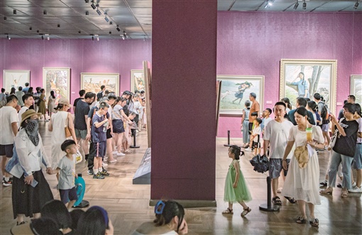 7月9日,市民在长沙李自健美术馆参观。暑假来临,许多家长带着孩子来到美术馆学习知识、欣赏艺术,丰富暑期生活。 湖南日报全媒体记者 李健 摄