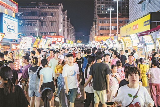 8月7日晚,长沙市开福区四方坪夜市人头攒动。炎炎夏日,夜市也持续升温。