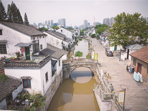 拾级登上园内高拱石桥,习近平总书记举目四望。眼前,古运河流水绵延;不远处,高架桥上客货车辆疾驰而过,给人以穿越古今之感。总书记感叹道:“在这里可以畅想一下古今沧桑。”