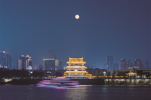 9月29日晚,长沙城上空,明月照秋夜。当天是农历八月十五中秋节,今年的中秋圆月不仅是“十五的月亮十五圆”,还是本年度第三大满月。 郑晓光 摄