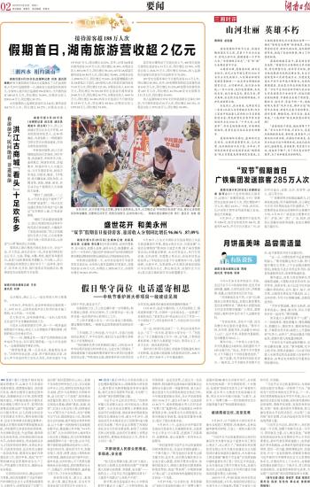 中秋国庆假期第一天,永州市各地举行丰富多彩的文旅活动。全市纳入假日监测的27家景区,共接待游客11.59万人次,实现收入2825.55万元,分别同比增长96.06%、87.09%。