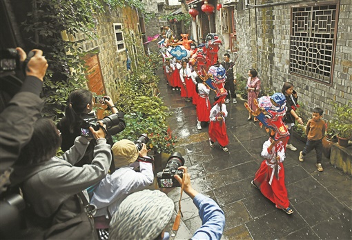 10月5日,摄影爱好者在吉首市乾州古城拍照采风。“双节”假期,吉首市各大景区人潮涌动,游客们观历史文化街区,赏多彩“非遗”文化,乐享假期。