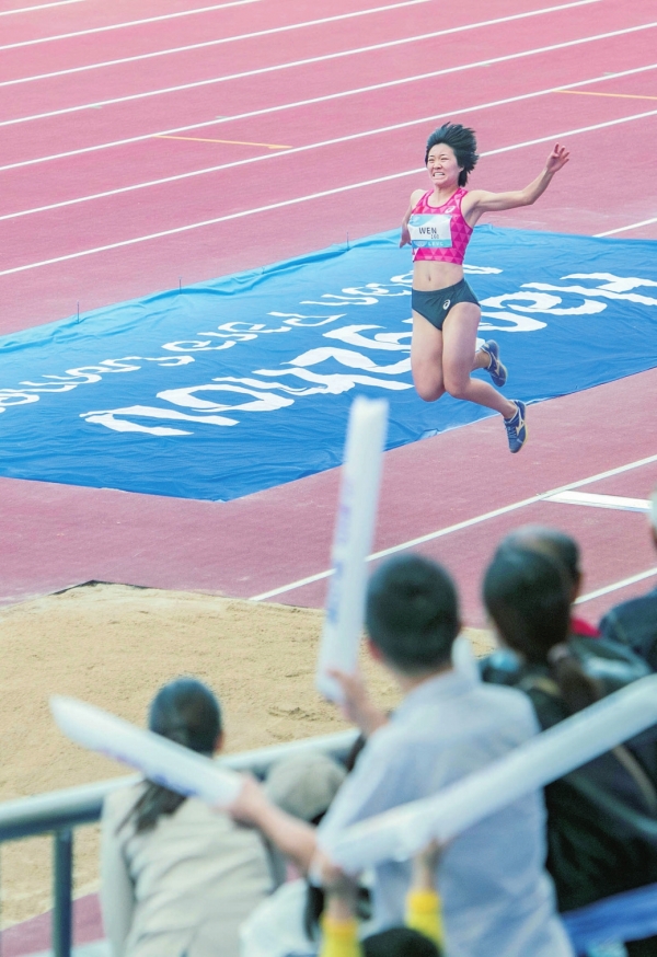10月24日,杭州黄龙体育中心体育场,湘籍选手文晓燕在女子跳远T37/38级决赛中,以5.45米的优异成绩夺冠,打破了她在7月创下的5.33米的世界纪录。 |