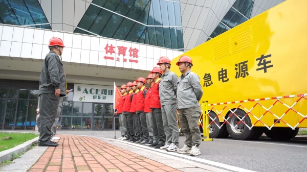 运动员在赛场激烈角逐,保电人员在幕后默默坚守。比赛期间,邵阳公司在重点酒店、比赛场馆内接入2台500千瓦UPS应急电源车,有力确保了比赛供电“零差错”。抽调骨干技术人员126人成立6支保电突击队,全天候驻守重点场所,确保比赛期间相关设备可控、在控、能控。10座变电站、11条输电线路和16条配电线路实行不间断巡视。在65处关键设备位置现场值守,抢修车辆18辆随时待命。