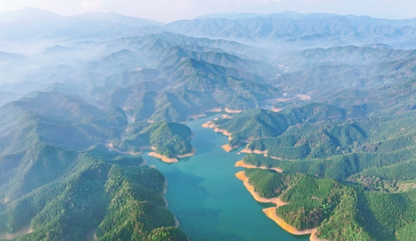 11月5日,常宁市天湖湿地公园,云雾与群山、湖面、村庄交相辉映,构成一幅美丽的山水画卷。近年,该市坚持绿色发展,守护好绿水青山,打造生态家园。