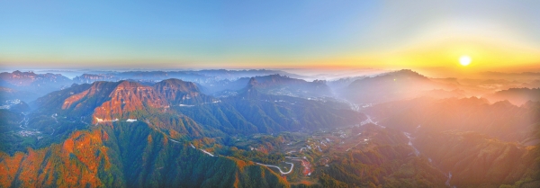 11月14日清晨,张家界市武陵源区协合乡,连绵峰林间云雾蒸腾,在朝霞的映照下如诗如画。湖南日报全媒体记者 郭立亮 摄
