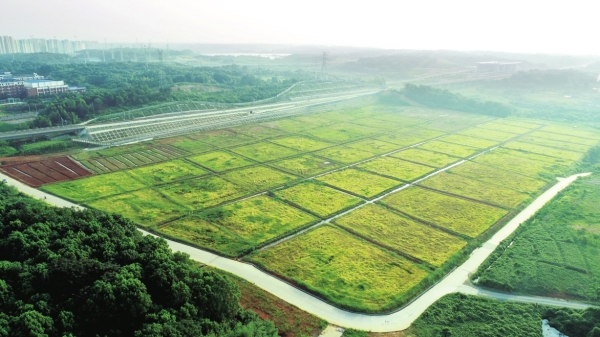 笔者在复垦整改现场看到,被刚刚整理后的临时用地地块上种上了农作物,农作物冒出绿油油的芽尖,衬托出春天般的清新气息,与周边房屋农舍和山峦树木相互映衬,形成一幅景色宜人的美丽画卷,放眼望去,心旷神怡;一丘丘整理出来的纵横交错的田地一眼望不到边,田里还残留着稻谷割收不久的稻秆,眼前浮现收割前金黄灿灿、果实饱满的丰收景象,令人赏心悦目,原来的一片脏乱差且存在安全隐患的临时用地地块变成了如今的高铁沿线靓丽风景线。