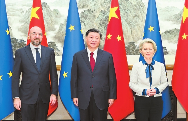 习近平强调,今年是中国同欧盟建立全面战略伙伴关系20周年。双方要总结历史经验,把握世界大势,坚持全面战略伙伴关系正确定位。双方要夯实政治基础,坚持以战略视野看待彼此,发挥好领导人会晤和五大高层对话的引领作用,加强战略性沟通,以建设性对话增进理解、妥处分歧。双方要树立正确认知,增进理解互信,重信守义,一心一意发展关系,不能因为制度不同就视彼此为对手,不能因为出现竞争就减少合作,不能因为存在分歧就进行对抗。中欧经济具有高度互补性,双方要多做加法,以更深入、更广泛合作拉紧中欧利益共同体的纽带。中国经济增长保持稳中向好势头。中国正在推进高质量发展和高水平开放,愿将欧盟作为经贸合作的关键伙伴、科技合作的优先伙伴、产业链供应链合作的可信伙伴,追求互利共赢,实现共同发展。双方应该加强市场、资本、技术优势互补,推进传统产业升级和新兴产业发展,探索合作新模式,打造新的增长点,合力完善产业链供应链。双方还要加强人文交流,便利人员往来。