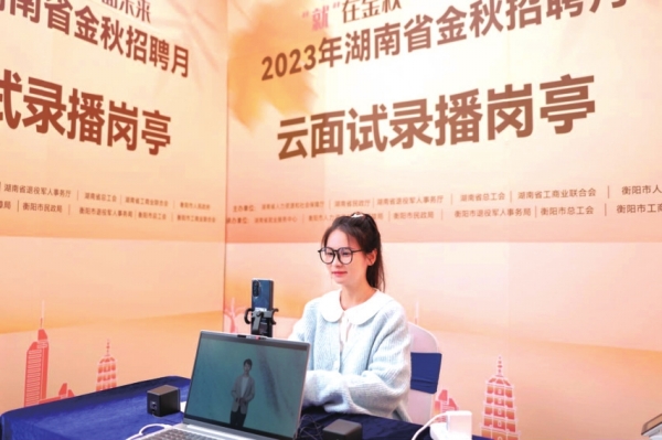 “在衡阳找工作真方便。招聘会上的‘云面试’很新鲜。云面试录播岗亭更新潮。” 长沙理工大学会计专硕刚毕业的刘曼清抑不住内心的高兴,她通过这次云面试与多家企业进行交流,很快找到了心仪的岗位。