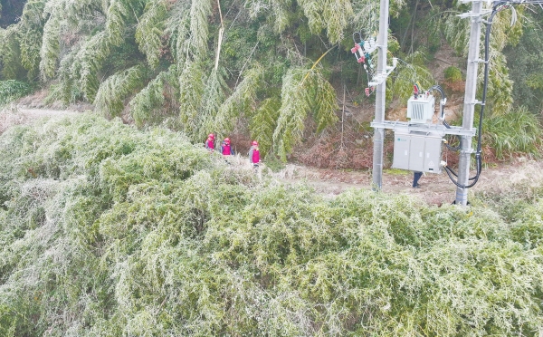 12月19日,国网长沙望城区供电公司丁桥供电所的工作人员在进行输电线路巡视。受低温寒潮天气影响,连日来,湖南多地高寒山区气温降至零下四五摄氏度,国网湖南电力部署了129支应急基干队伍、1638名基干队员,504支抢修队伍、8300名抢修人员,全力以赴做好电力保供工作,确保电网安全稳定运行。