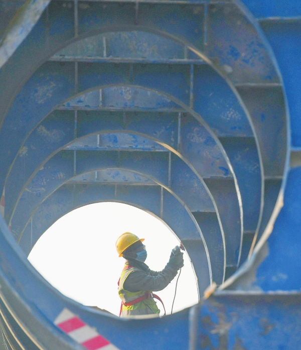 12月30日,零(陵)道(县)高速双丰隧道施工处,工人在打磨隧道拱架。元旦假期,当地众多建设者坚守岗位,奋战在施工一线,确保工程建设进度。 蒋克青 摄