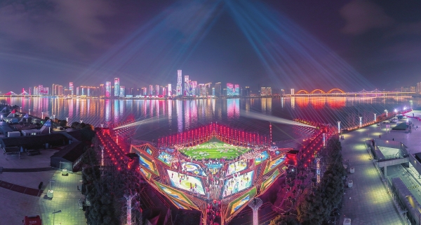 2月12日,长沙滨江文化园,春晚分会场舞台向公众开放,吸引了众多市民和游客前来打卡留影。
