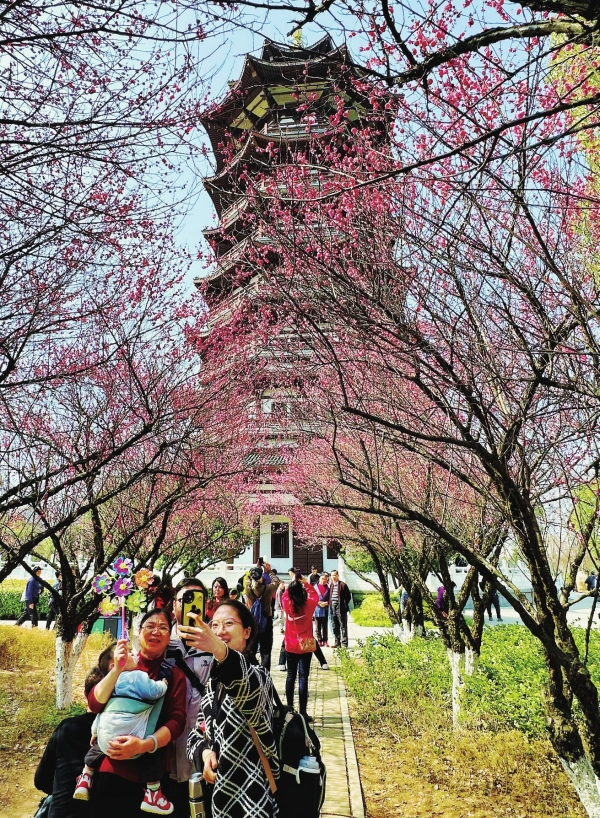 2月14日,游客在长沙洋湖国家湿地公园赏花留影。当天春光明媚,气温宜人,市民纷纷走出家门,赏花泛舟,感受春的味道。