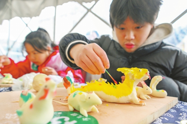 2月23日,孩子们用煮熟的米粉团捏制小动物。当天,安仁县举行第十一届“国桢杯”元宵米塑大赛活动。当地民间有捏米塑庆元宵的传统习俗,安仁元宵米塑俗称“琢鸡婆糕”,2012年被列为第三批省级非遗代表性项目。