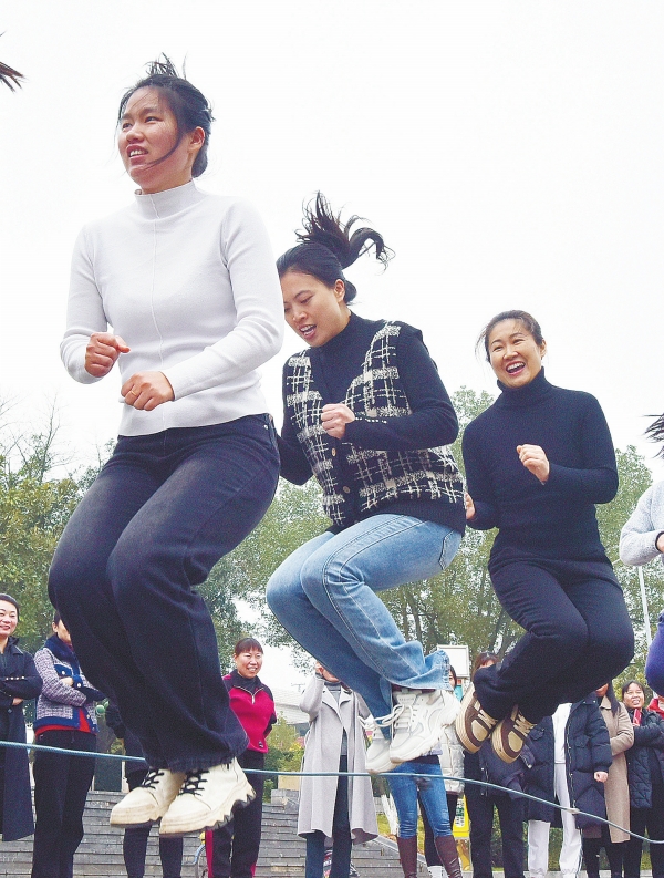 3月6日,嘉禾县珠泉镇,女职工在参加趣味跳绳比赛。该县各地妇联开展文艺演出、踏青登山等活动,展现女职工健康向上团结奋进的精神风貌。黄春涛 肖俊芳 摄影报道(湖南图片库)