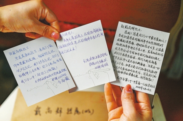 长沙民政职业技术学院和长沙市第二十一中学学生的祭奠卡片。