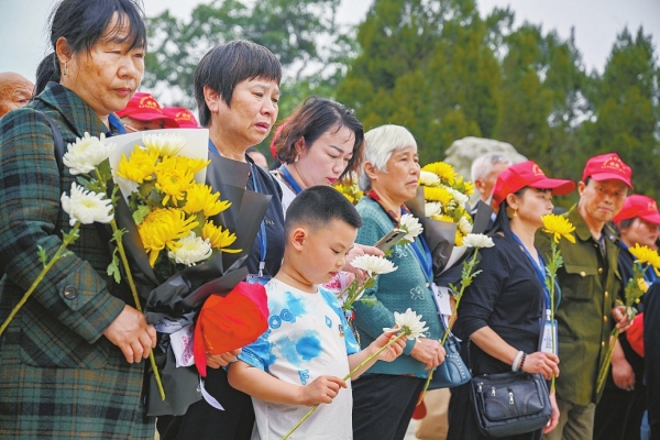 3月29日,烈士亲属们手持鲜花缅怀英烈。