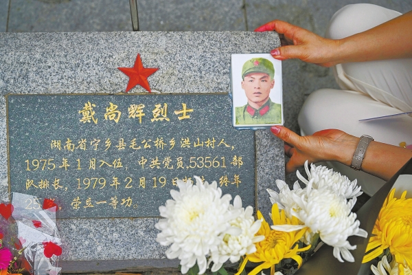 3月29日,戴尚辉烈士的女儿戴灵芝抚摸照片良久,泣不成声。这张新添的彩色照片,是她对父亲的唯一记忆。