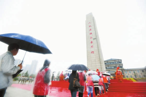 4月4日,湖南革命陵园,市民在人民英雄纪念碑前献花。当天,长沙市“2024·铸魂”清明祭英烈主题活动举行,社会各界群众代表、烈属代表、部队代表、师生代表共计百余人到现场缅怀革命英烈,寄托哀思。