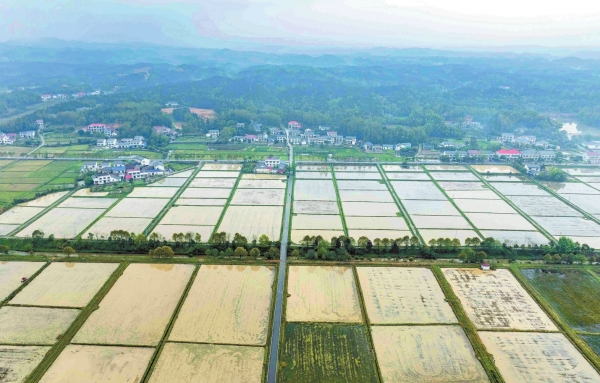 4月5日,长沙县金井镇风形山村,翻耕灌水后的农田地块平整、路网纵横。近年,该县持续推进高标准农田提质改造工程,助力农户增产增收。