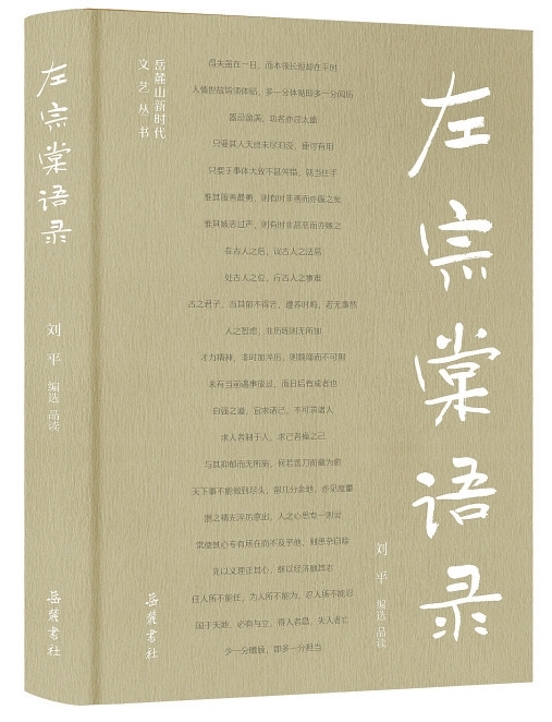 我念左公,念左公“箴规”之益。运用箴言类语录教育是左公教育他人的常用方式。为了传承左公遗风,写作此书(《左宗棠语录》 刘平编选,岳麓书社出版)时,在体例方面我选取以语录这种传统形式,截取左公人生经历中的经典截面,于每编的总叙之后,分叙左公语录;在内容方面努力将启迪性、精炼性、通俗性作为撰写的原则,以能满足不同文化层次读者的阅读习惯与需求。