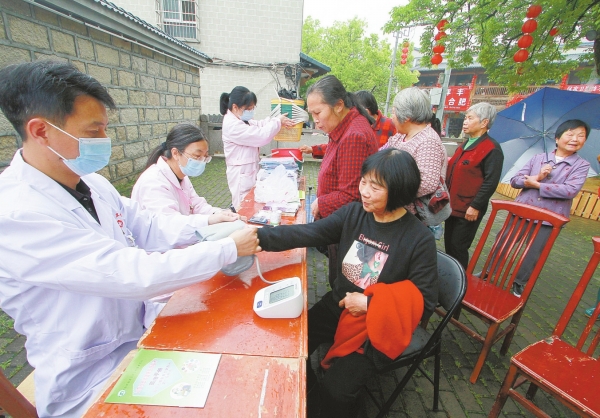 与镇江市级医院联动设立全科—专科联合门诊,专家定人定时来岛上服务;对全镇2200多名高血压和糖尿病患者开展规范化管理……如今,世业镇卫生院年门诊量6万人次,基层就诊率84.79%,慢病患者就诊率达到90%。