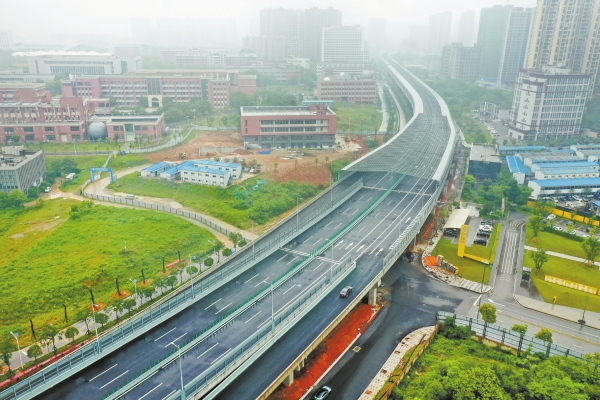 4月30日,长沙万家丽路快速化改造北延线(含电力隧道)工程,施工车辆在高架桥上行驶。当天,该工程主线施工基本完成,达到试通车条件。该工程全长4.77公里,建成后将实现湘府路高架、万家丽路高架、星沙联络线和二环线全程无红绿灯的无缝对接,形成“长沙2.5环”。