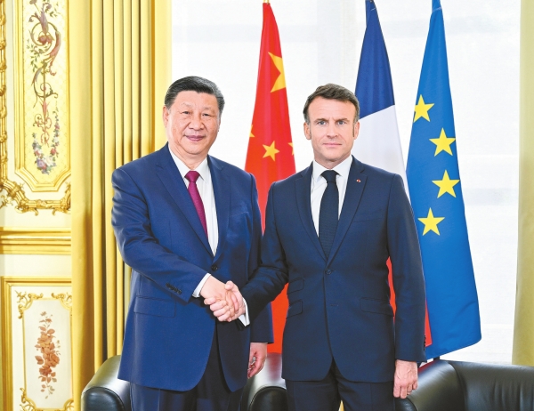 马克龙表示,今年法中将共同隆重庆祝法中建交60周年。法中关系友好,合作富有成效,不仅涉及高尖端技术,也包括气候变化、海洋多样性等全球性议题。习近平主席访问期间,双方签署多项合作协议,再次彰显法中合作的潜力和前景。当前,世界面临诸多紧迫挑战,法中关系处于承前启后的关键时刻。法中关系具有深厚底蕴,双方相互尊重,着眼长远,加强合作,将为解决全球性挑战、避免集团对立对抗发挥重要积极作用。法方希望同中方进一步密切双边经济关系和多边沟通协作,推动法中战略伙伴关系取得更多成果。法方希望向中国出口更多农产品,同时将对中国保持市场开放,不会针对中国企业搞歧视性政策,欢迎更多中国企业包括高技术企业赴法投资合作。法方愿同中方加强航天航空、民用核能等领域合作,共同办好今年法中文化旅游年活动,欢迎中方派团出席巴黎奥运会。法方愿就气候变化、生物多样性保护、人工智能等全球性问题同中方密切沟通合作,共同维护多边主义、联合国宪章宗旨和国际法。