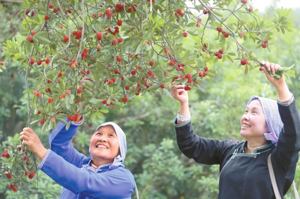 6月1日,通道侗族自治县县溪镇恭城村乐蒙杨梅生态产业园,村民在采摘杨梅。近年来,该村通过农业产业结构调整,利用自然资源优势,引进优良品种,在闲置荒山种植了近500亩杨梅,如今成为了该村助农增收的特色产业。刘强 潘启娟 摄影报道(湖南图片库)