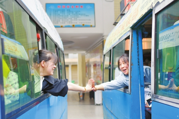 6月6日,双峰县第五中学,考生击掌鼓劲。当天,该县各中学的高考考生开始奔赴县城考点,参加7日的高考。 李建新 摄(湖南图片库)