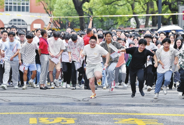 6月7日,高考首日,第一科考试结束,长沙市第一中学考点,考生们飞奔出考场。