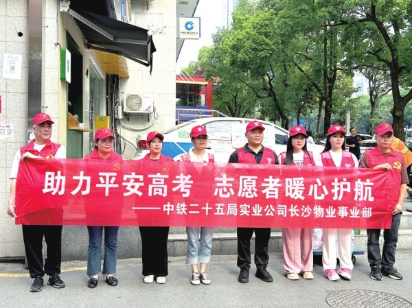 6月7日一大早,中铁二十五局实业公司长沙地区事业部启动“助力平安高考 志愿者暖心护航”志愿者服务活动,在长沙市铁路一中考点设立爱心助考站,免费提供瓶装水、牛奶、防暑药品、消暑物品,并为考生及家长提供路线咨询、爱心送考等各类志愿服务。(文/图 李 萍 赵福求)