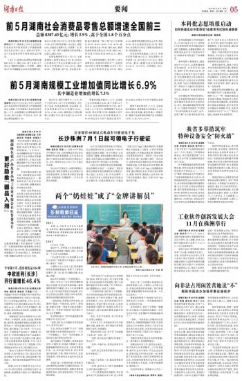 前5月湖南规模工业增加值同比增长6.9%