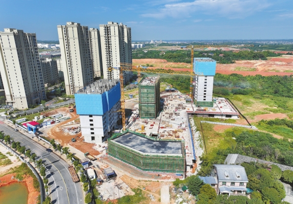8月6日,航拍湖南建投建工集团直属一公司承建的望城经开区保障性租赁住房一期项目工地。该项目是望城经开区投资1.5亿元建设的人才公寓项目,设计精装修租赁住宅657户,可满足附近5G智能终端产业园、手机配件产业园等企业2000余名员工的安居需求。