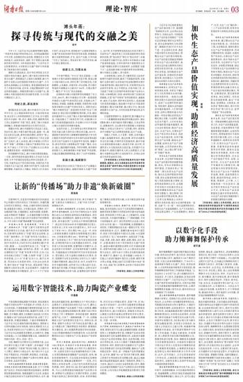 中国是陶容器起源最早的国家,更是瓷器发明最早并领先世界千年的国家。作为科技、艺术与文化的结晶,中国瓷器蕴含着深厚的民族文化内涵,代表着中华民族的形象。随着时代发展,日用陶瓷、艺术陶瓷、建筑卫生陶瓷日益走进人们的生活。陶瓷文创产品的品类也更加丰富,出现了手工陶瓷茶器、穿戴装饰陶瓷、卡通吉祥物陶瓷等。习近平总书记在湖南考察时强调指出,要探索文化和科技融合的有效机制,加快发展新型文化业态,形成更多新的文化产业增长点。深入贯彻落实习近平总书记的重要讲话精神,应在数字化、智能化的基础上大力发展陶瓷智慧文创,为陶瓷经济的勃兴再添一把火、再加一把力。