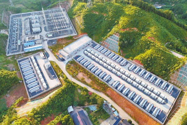 8月22日,通道侗族自治县塘冲储能电站,一排排电池舱在阳光映照下蔚为壮观。近年,该县在大力发展风力发电的同时,引入装机容量100MW/200MWh的化学式电储能项目,弥补风力发电的间歇性和不稳定性,源源不断地将清洁能源从这里并网外送。 李尚引 摄(湖南图片库)