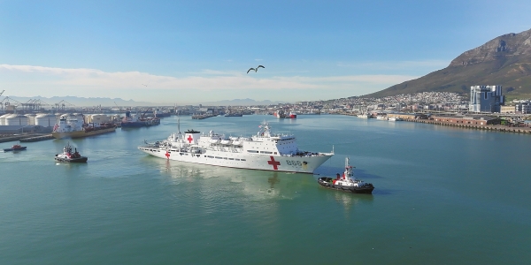 执行“和谐使命-2024”任务的中国海军“和平方舟”号医院船8月22日抵达南非,开始进行为期7天的友好访问并提供医疗服务。这是“和平方舟”号医院船首次访问南非。图为当日,“和平方舟”号医院船抵达南非开普敦港。新华社 发