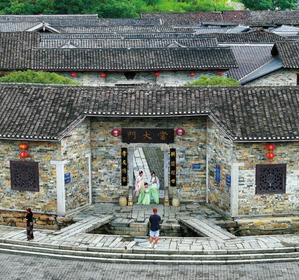 岳阳县张谷英镇张谷英村,游客身着古装在古民居前打卡。湖南日报全媒体记者 童迪 摄 |