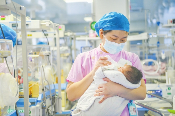 9月17日,道县人民医院新生儿科,医务人员在给新生儿做护理。中秋节,当地医院的医务人员坚守岗位。蒋克青 柏华林 摄影报道(湖南图片库)