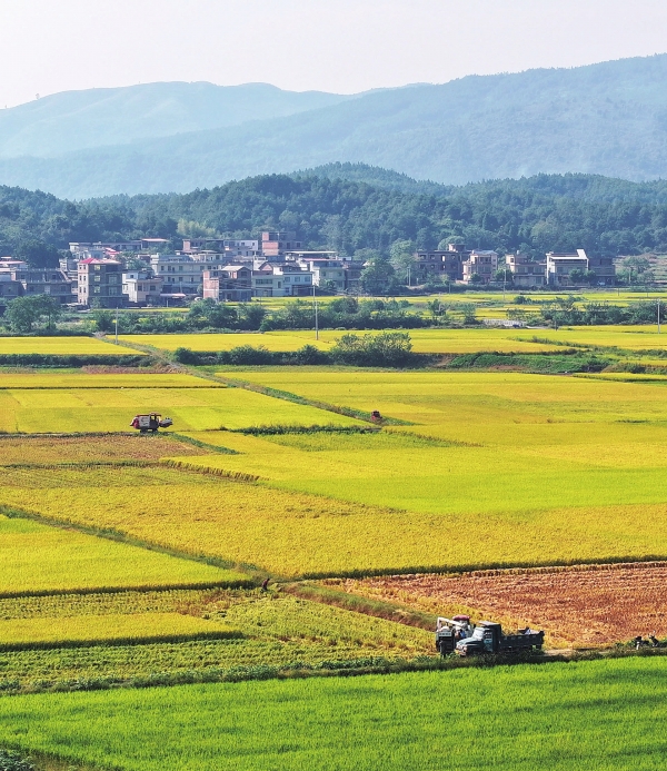 10月12日,道县梅花镇宜阳村,农机手驾驶农机在收割晚稻。金秋时节,该县晚稻陆续成熟,农民抢抓晴好天气收割,确保秋粮颗粒归仓。何红福 摄(湖南图片库)