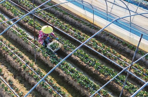 10月13日,娄底经开区大埠桥街道中阳村,村民在进行草莓管护工作。时下是草莓苗的关键管护期,娄底经开区的种植户们抢抓农时,积极做好草莓管护工作,为草莓丰收打下坚实基础。吴永华 摄(湖南图片库)