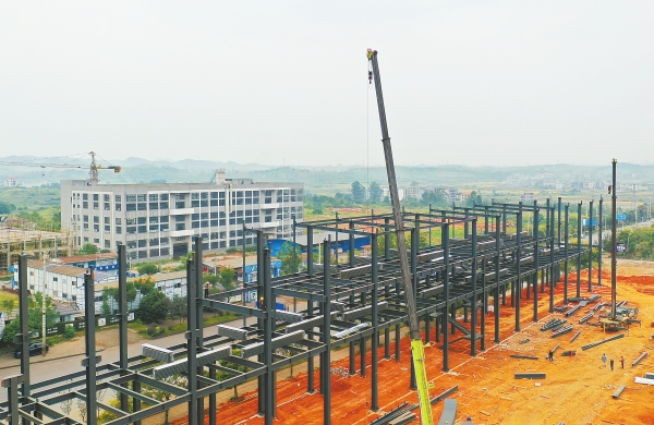 10月14日,嘉禾县高新区,工人在建设标准厂房。近年来,该县依托铸造资源优势,推进产业园区发展,加大基础设施建设,努力构建良好营商环境和经济发展新平台,吸引了多家优秀企业入驻,有效推进县域经济可持续发展。黄春涛 摄(湖南图片库)