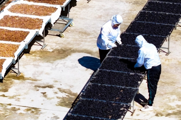 10月23日,通道侗族自治县菁芜洲镇中药材集散中心,工人在摊晒黄精。近年来,该县积极引导农民发展中药材产业,带动村民增收致富。