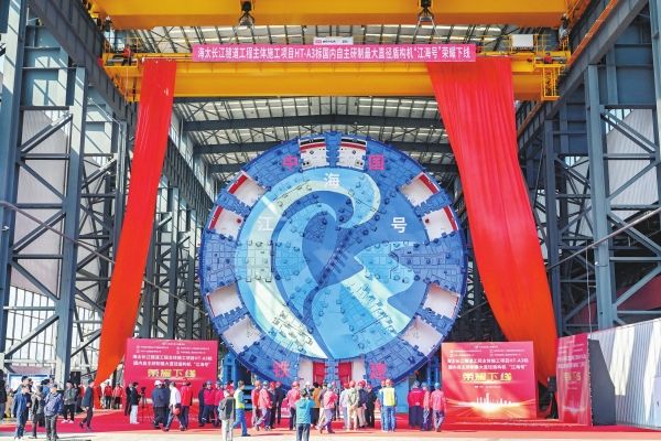 研制团队经过2年多攻关,对刀盘、刀具、主驱动等关键部件进行针对性设计,整机采取自主研发的多项新技术。中国铁建重工集团掘进机研究设计院高级工程师范瑞强介绍,超大直径意味着主驱动轴承负载大,为主驱动配置伸缩功能、监测系统,可有效避免刀盘异常受力造成的主轴承过载。在75米最大埋深、7.5巴超高水压下,刀盘配置常压换刀功能,刀具硬度更高、耐磨性更强;采用管片连接构件智能拼装系统,提升密封部件承压能力,应用第四代同步注双液浆技术,实现盾构隧道沉降的毫米级精度控制,保证施工高效、安全。