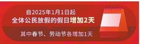 春节假期延长。增加后春节放假4天(农历除夕、正月初一至初三),放假调休8天。在除夕逢周五时,与周末顺连还可实现放假9天,例如2027年。春节时间延长且更加固定,大家能更好地安排探亲休假。