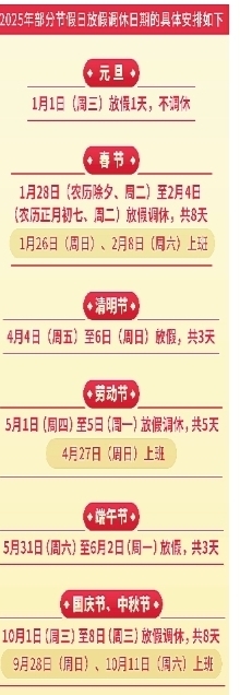 《国务院关于修改〈全国年节及纪念日放假办法〉的决定》,及2025年部分节假日安排12日公布。就社会各方面关心的问题,有关方面负责同志接受了记者采访。