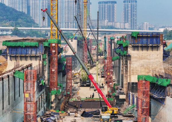 12月4日,湘江永衡航道潇湘船闸工程建设施工现场,工人正抢抓进度,快速推进项目建设。由中交二航局承建的潇湘船闸工程是湘江永州至衡阳三级航道建设三期工程的重要节点,对提升航道通航能力、促进区域经济发展有重要意义。