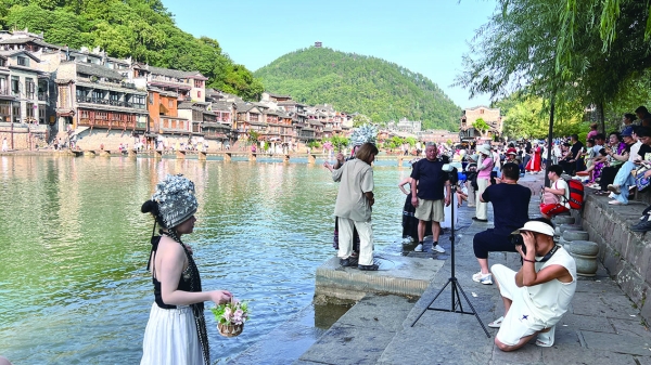 天下凤凰,旅拍天堂。节日期间,凤凰古城身着五彩斑斓民族服饰的年轻男女,在摄影师的镜头前留下美好靓影。蓬勃发展的旅拍产业背后,离不开1026家旅拍店及其1万余名从业人员。2023年,湘西州旅拍产业总收入突破5亿元,旅拍已然成为区域经济发展的又一动力。