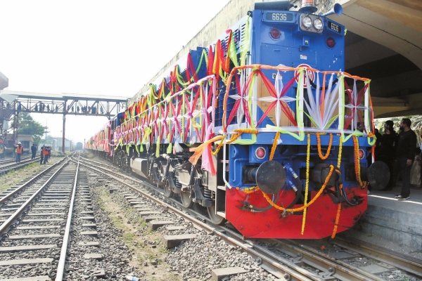12月24日,帕德玛大桥铁路连接线全线通车后的首班列车抵达孟加拉国首都达卡。
