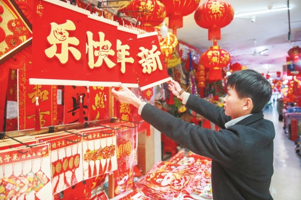 12月27日,娄底市娄星区九龙批发市场,市民在挑选新年饰品。